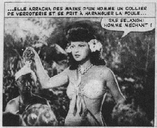 Sous une couverture annonçant un Jungle Jim est présentée en fait une aventure de Bomba. Son interprète, Johnny Sheffield, avait été Boy dans la série des Tarzan-Weissmuller. Il connaitra un second souffle avec une série de films sur ce personnage de Bomba, pâle imitation du personnage de Tarzan.