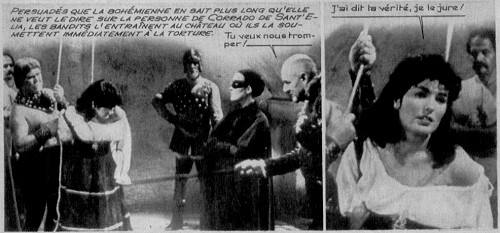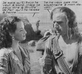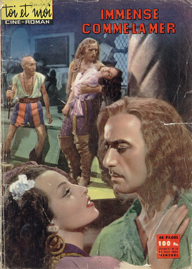 Dans la même collection figure le très rare La figlia del corsaro verde, d'après Emilio Salgari. On connait beaucoup plus les aventures de pirates de Malaisie de cet auteur (les nombreuses versions des aventures de Sandokan ou de Tremal-Naïk - voir en particulier les cinés-romans Jungle Film) mais Salgari a été aussi prolifique en matière de pirates des Caraïbes. Dans une autre couleur, La fille du corsaire noir avec May Britt était un film très plaisant de Mario Soldati dont je ne connais pas d'édition ciné-roman. On trouvera chez Star Ciné Bravoure Le Fils du corsaire rouge avec Lex Barker qui contient un duel final de la meilleure veine. Les corsaires vert, noir et rouge étaient rassemblés dans le merveilleux Trois Corsaires (de Mario Soldati encore) malheureusement non édité en ciné-roman.