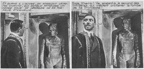 Terence Fisher ne renouvelle pas le thème comme il l'a fait pour Frankenstein et Dracula. Il reste pour une fois dans la continuité de la série Universal sur la momie, et la reprend là où Lon Chaney Jr l'a laissée. Et pourtant il s'agit d'un chef d'oeuvre absolu. Classicisme du scénario, efficacité de la mise en scène et du montage, éclairages dont seul Mario Bava saura approcher la beauté. Christopher Lee surpasse ses prédécesseurs. Le ciné-roman s'arrange quelque peu avec le montage en regroupant les deux flash-backs de l'Egypte antique en une seule séquence.